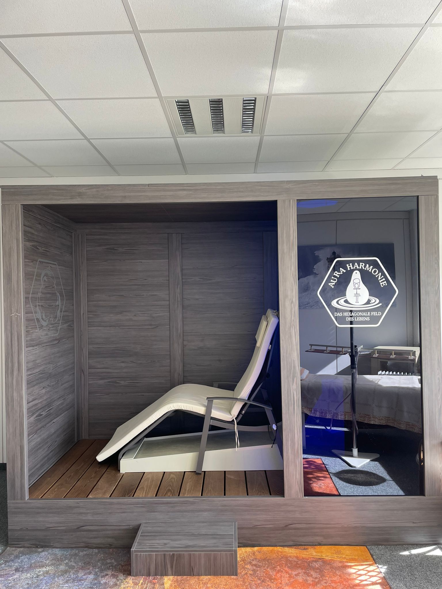 Die Umwelteinflüsse unserer modernen Zeit beeinflussen den menschlichen Körper und können zu einer Überenergie im Organismus führen. In der Aura Harmonie Liege werden durch ein sich im Kreislauf befindliches hexagonales Wasser plusgeladene Quanten neutralisiert und aus dem Körper verdrängt. Die damit verbundene Entschleunigung entlastet den Organismus und gibt ihm Vitalität und Leistungsstärke zurück.